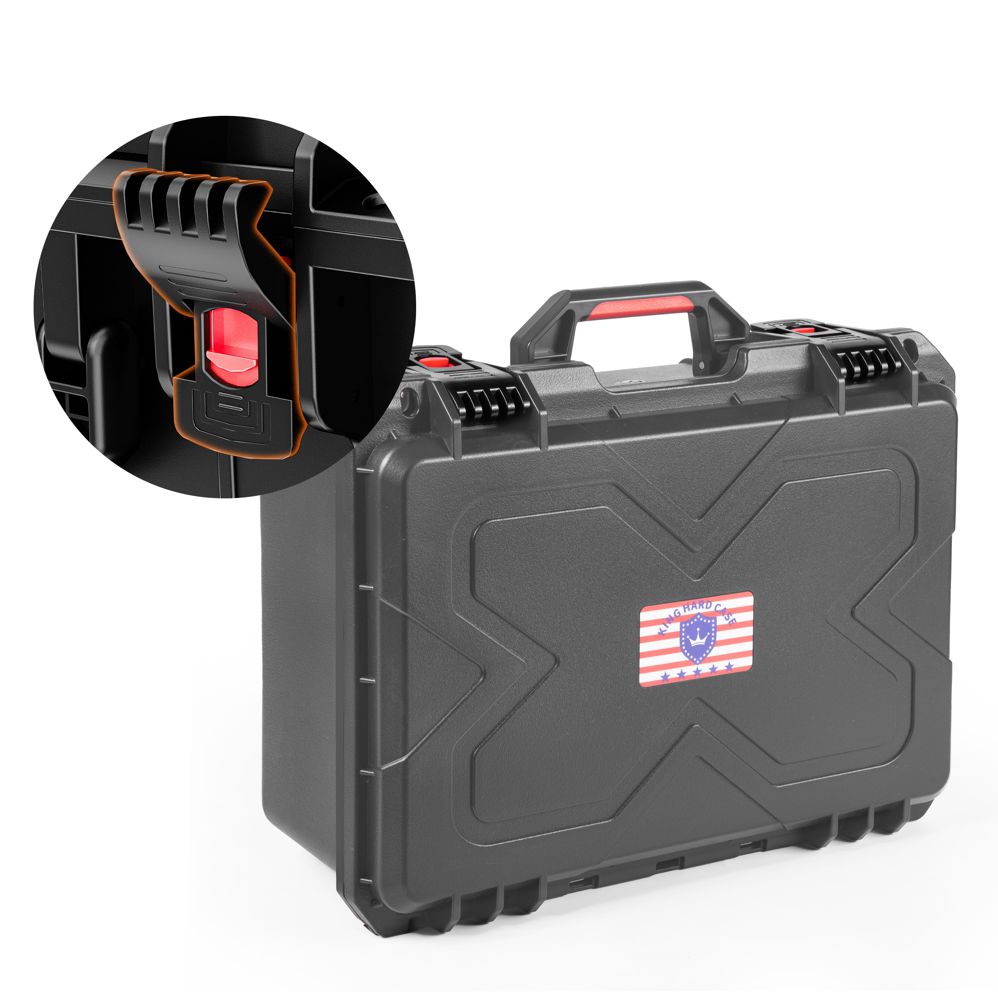 Features a double latch lock design for enhanced security. The sturdy latches ensure a tight and secure seal, keeping your gear safe and preventing accidental opening during transport or storage.